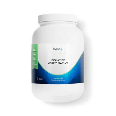 Notre Whey Native Isolate est purifiée à 95% en protéines et contient 50% d’acides aminés essentiels et 24% de BCAA. Issue de lait de vache frais de pâturages européens, elle est obtenue par ultrafiltration à froid afin de préserver au mieux sa conformation native. Elle contient également une faible teneur en lactose, glucides et lipides, lui conférant une haute digestibilité.