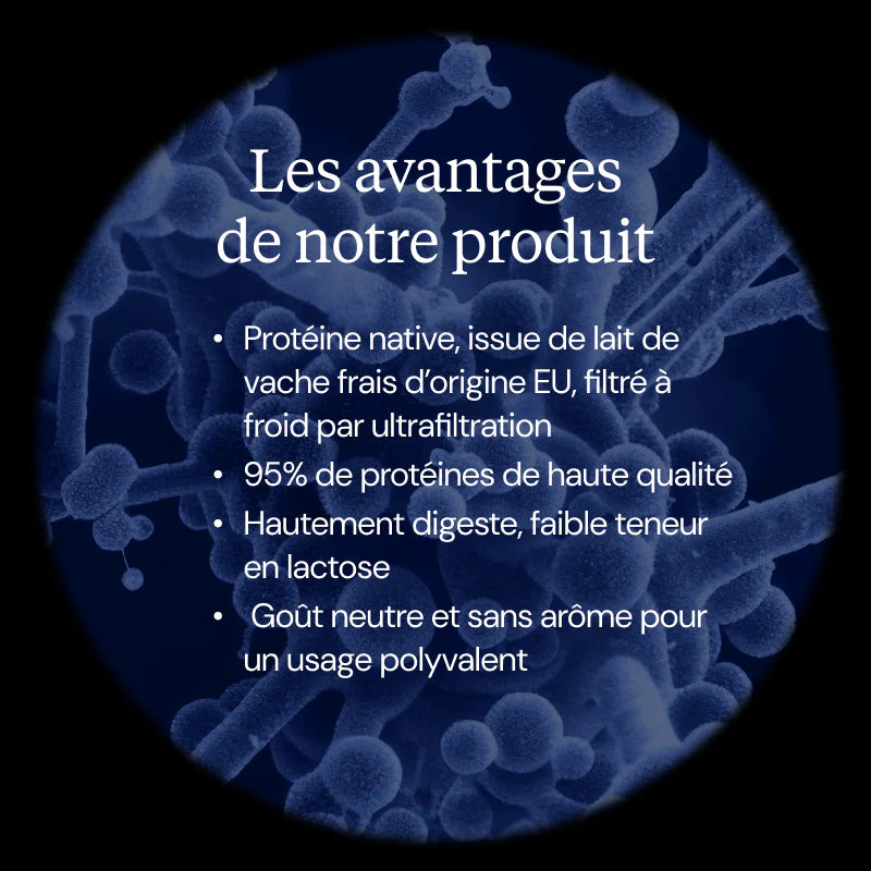 ✅ Qualité "Native" : Contrairement aux whey classiques, elle n'est pas un sous-produit du fromage, ce qui garantit une meilleure valeur biologique, moins de lactose et plus d'antioxydants.